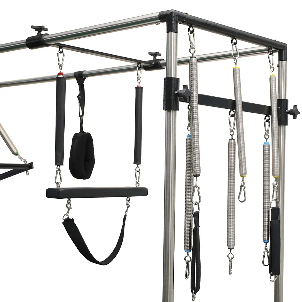 Equipped with complete accessories to support a wide range of trapeze and resistance-based exercises.